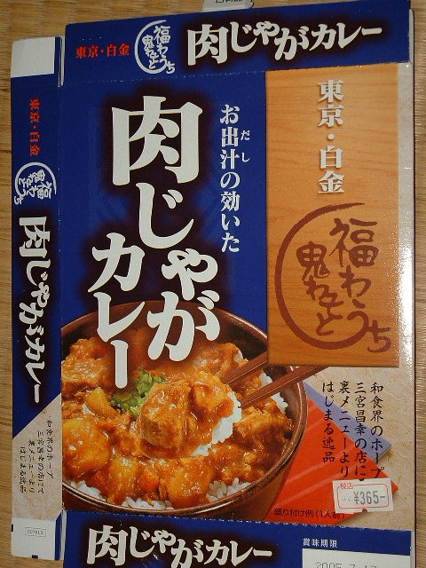 特筆すべきは東京・白金 福わうち鬼わそと 肉じゃがカレー。 これは猛烈に美味しい。出汁がしっかり効いていて、 思い出しただけでもよだれが出てくるくらいの逸品。 しかし、今では見かけなくなったので入手困難です。 こういう美味しいカレーが定番になって欲しいなぁ。 他のカレーはぼちぼちですね^ ^